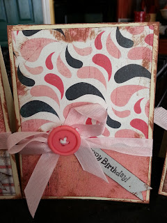 Attended my card class this week (I have missed more than I have attended lately) – the original card was quite different looking overall, but I kind of liked the papers I chose to work with. I love the simplicity of this card. I made a total of 24 – it will be a nice addition to my collection.