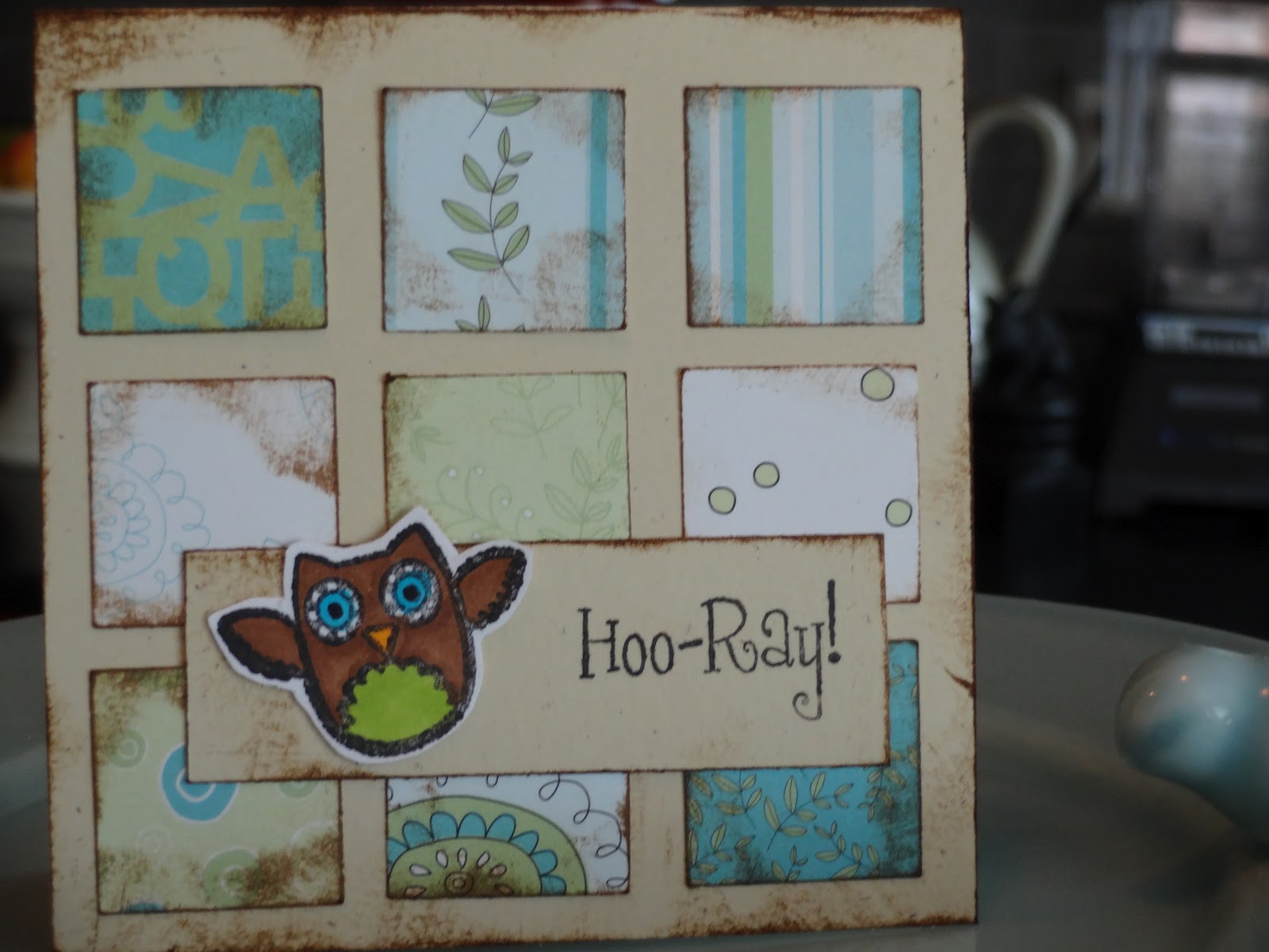 I made 24 of the card above. More time consuming – lots of little pieces, but nothing hard about it. Funny thing about this one is I “copied” it from another card and was not as happy with my owl stamp as I was with hers. When putting the stamps away-I discovered I had the very same owl stamp as she had used on the original card – STUPID! Oh well, there is always next time……